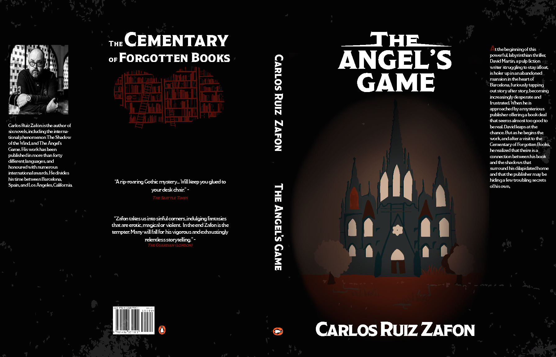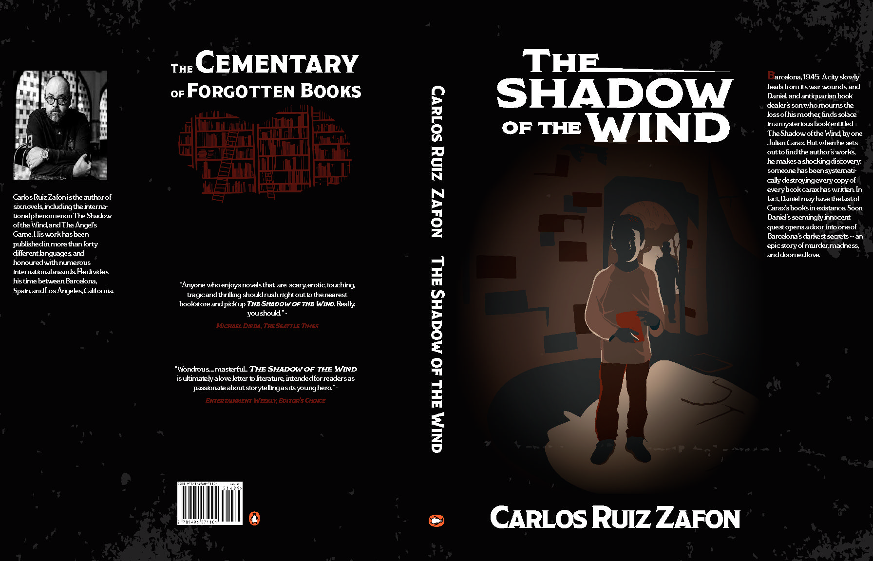 The Cemetery of Forgotten Books series is a series by author Carlos Ruiz Zafon. For this project I was tasked with redesigning three book jackets to fit each book in the series, a poster, book display, and two additional pieces of collateral. The setting takes place in Barcelona and we follow the story of individuals who’s lives are tied to the Cemetery of Forgotten Books.